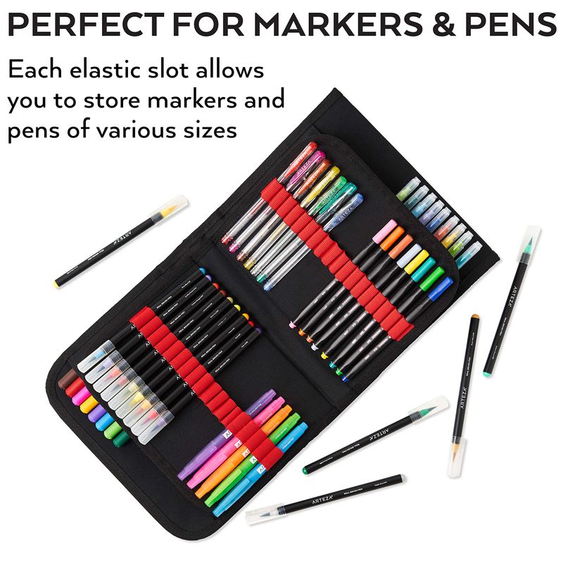 ARTEZA ORGANIZADOR DE MARCADORES DE ARTE (72 RANURAS), FUNDA DE TRANSPORTE PARA VIAJES Y ALMACENAMIENTO CON BOLSILLO CON CREMALLERA, ASA, CORREA EXTRAíBLE Y AJUSTABLE, SUMINISTROS DE ARTE PARA ARTISTAS Y PRINCIPIANTES
