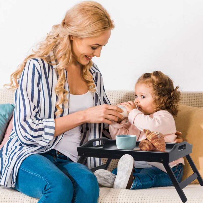 Artmeer Bandeja de cama con patas plegables, bandeja de desayuno de bambú con asas, ideal para sofá,
