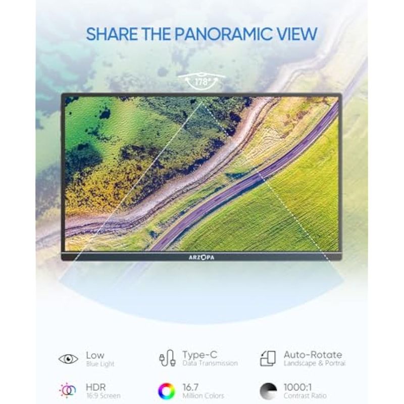 ARZOPA Monitor portátil, 15.6 pulgadas 1080P FHD monitor portátil USB C HDMI pantalla de computadora