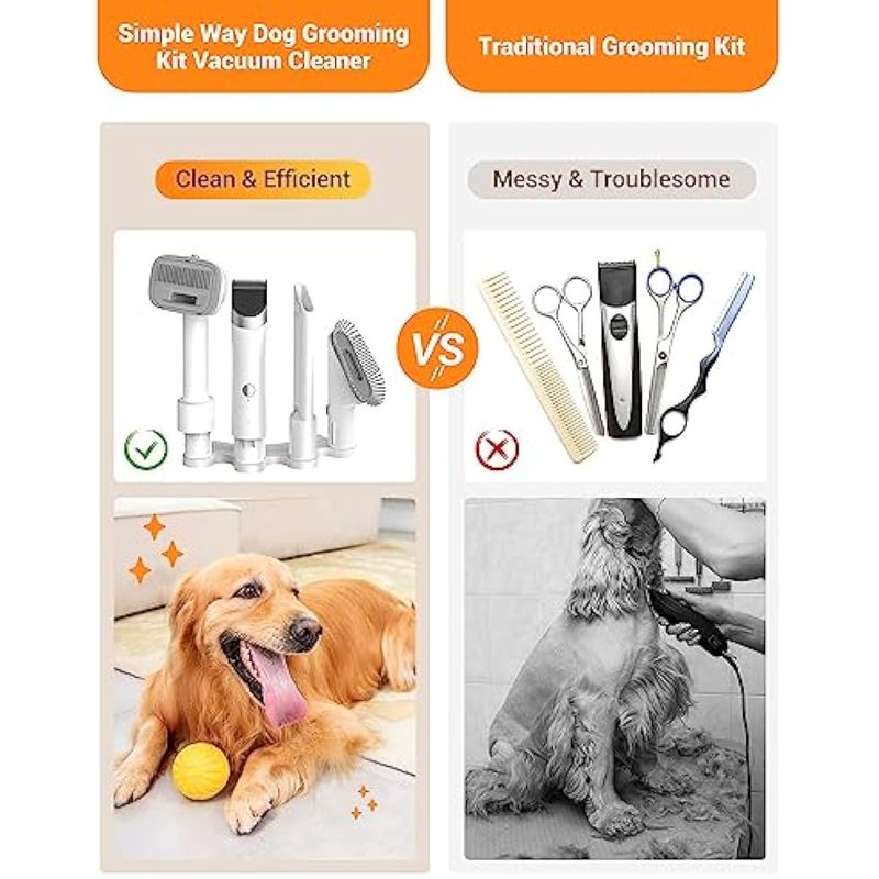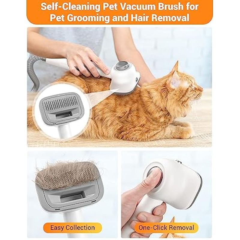 Aspiradora de aseo para mascotas, kit de aseo 6 en 1 para perros con 3 modos de succión y taza de