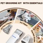 ?Más opciones para arreglar?Nuestros cortaúñas para mascotas, recortador de patas y molinillo de uñas para perros se pueden utilizar solos, no es necesario conectar la manguera, se cargan a través del cable tipo C incluido. Puedes recortar a tu perro en cualquier lugar, ya que estos cortaúñas son inalámbricos. También puede usar cortaúñas con vacío. Te da más opciones para preparar a tu mascota en cualquier lugar de tu casa o incluso en el exterior, Grooming no tiene un cable de alimentación limitado.