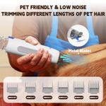 Apto para mascotas y bajo nivel de ruido: esta aspiradora de aseo para perros está diseñada para ser suave pero eficaz, minimizando las molestias para las mascotas durante las sesiones de aseo. Tiene una potencia de succión máxima de 11 Kpa, pero funciona silenciosamente también el cortaúñas y otras herramientas para evitar sorprender a tu mascota, ya que algunos perros o gatos pueden ser sensibles a los ruidos fuertes. Además, la manguera de 4.9 pies de largo no solo permite que la aspiradora se mantenga alejada de tu mascota, sino que también hace que las tareas de limpieza sean más convenientes para ti.