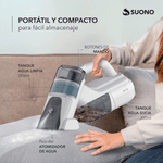 La aspiradora de mano Suono HOG0330 ofrece una limpieza eficiente y profunda gracias a su doble depósito de agua limpia y sucia, ideal para tapizados, sillones o el auto. Con 100 W de potencia y succión de 6000 Pa, permite pulverizar y aspirar al mismo tiempo para resultados más higiénicos. Su batería de litio recargable por USB-C proporciona autonomía suficiente para limpiezas rápidas, y su diseño compacto la convierte en una herramienta práctica para el hogar o fuera de casa.