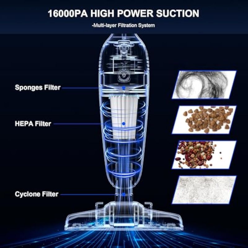 Sistema de filtro: la aspiradora doméstica cuenta con un HEPA lavable y reutilizable que mantiene una fuerte succión para una mejor maniobrabilidad y eficiencia de limpieza