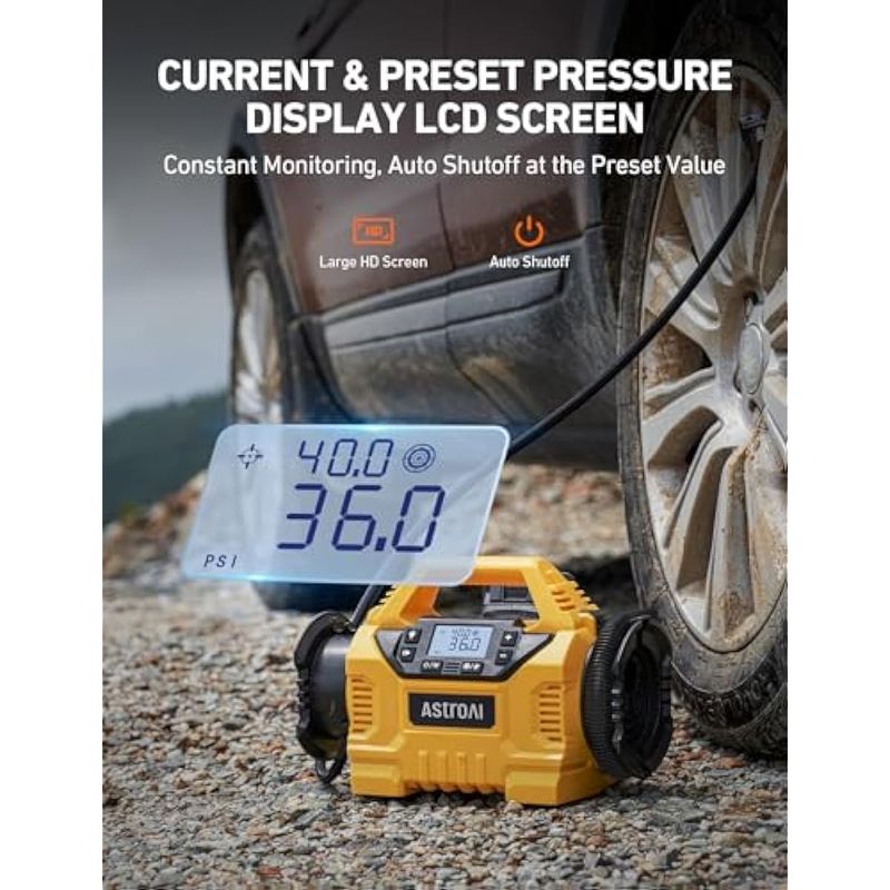 ASTROAI INFLADOR DE NEUMáTICOS INALáMBRICO, COMPRESOR DE AIRE PORTáTIL PARA BOMBA DE NEUMáTICOS DE AUTOMóVIL DE 160 PSI CON PANTALLA HD, 3 FUENTES DE ALIMENTACIóN Y MOTORES POTENTES DUALES, INFLADO/DESINFLADO DE BOMBA DE AIRE RESISTENTE, REGALOS DEL DíA DEL PADRE
