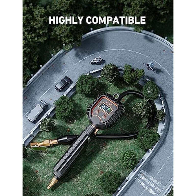 AstroAI Inflador digital de neumáticos con manómetro, portabrocas de aire de 250 PSI y accesorios de
