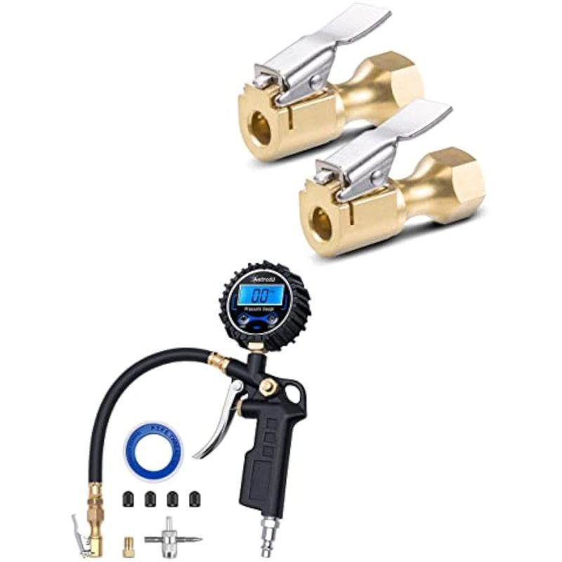 ASTROAI MEDIDOR DIGITAL DE PRESIóN DE NEUMáTICOS CON INFLADOR Y PORTABROCAS ASTROAI AIR, BLOQUEO DE FLUJO CERRADO DE ALTA RESISTENCIA EN EL PORTABROCAS DE NEUMáTICOS CON CLIP