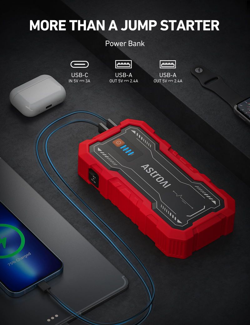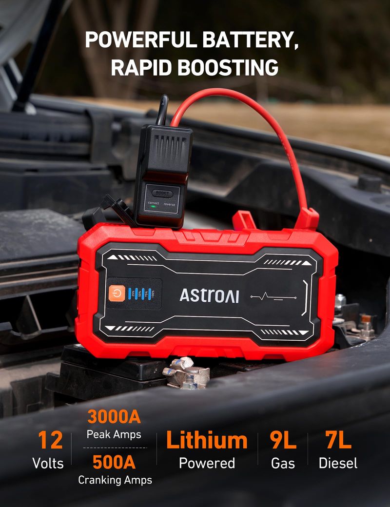 AstroAI S8 Pro - Arrancador de batería de automóvil, 3000 A para motores de gasolina de hasta 9.0 L