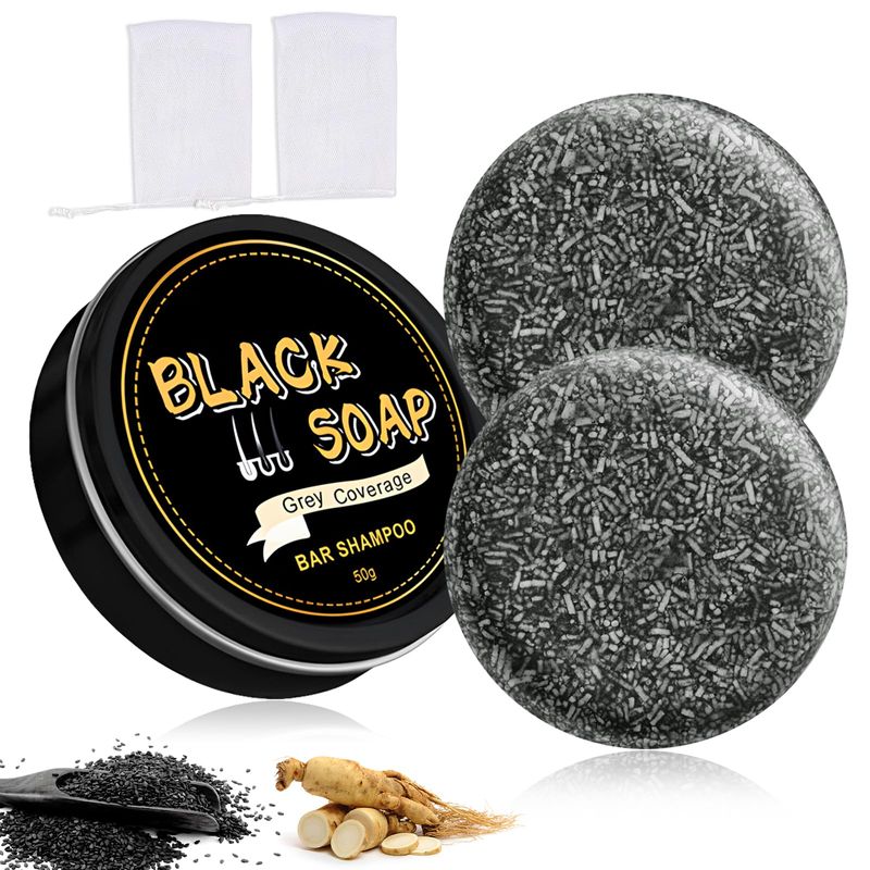 Atsy Jabón en barra de cabello gris, jabón negro natural para cobertura de cabello gris, barra de