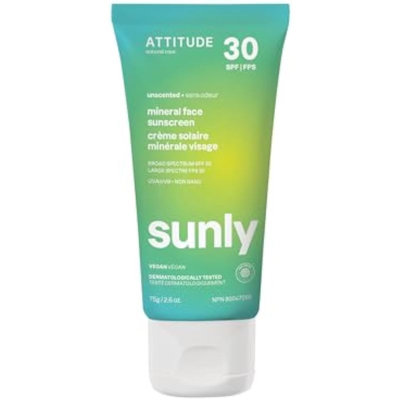 ATTITUDE Mineral Face Sunscreen with Zinc Oxide, SPF 30, EWG Verified, Broad Spectrum UVA/UVB
