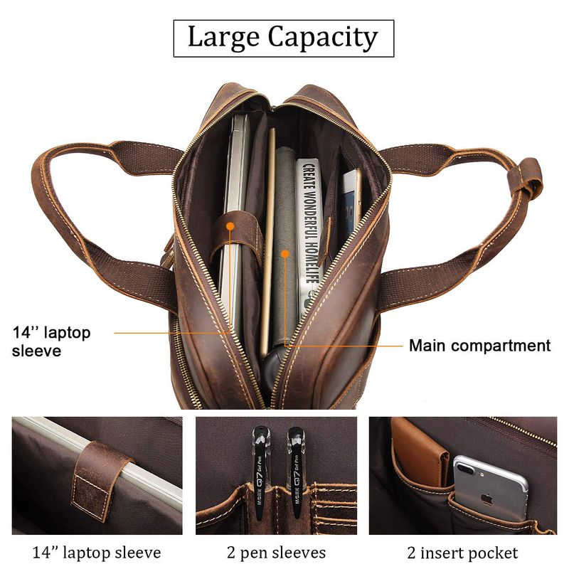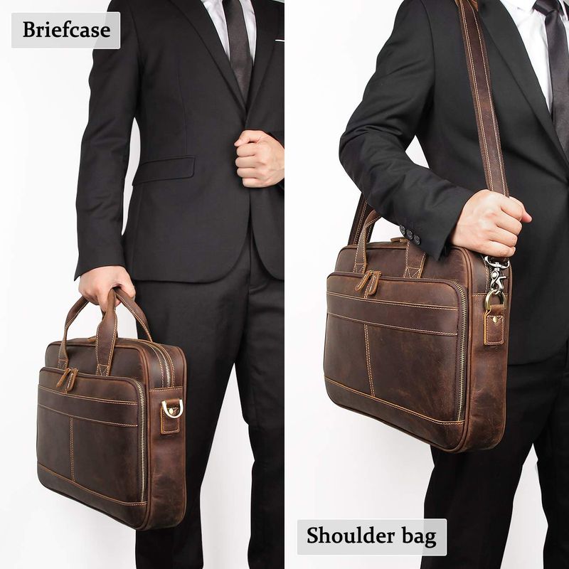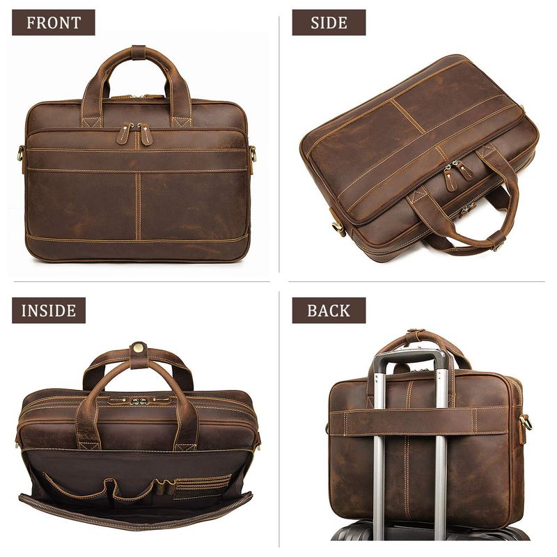 Augus Bolso bandolera de cuero para hombre, mochila de viaje vintage de 17 pulgadas, maletín para