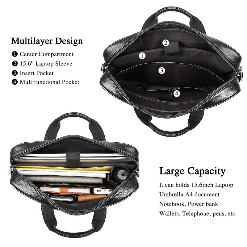 INFORMÁTICANOTEBOOKSAugus Maletín de cuero para laptop para hombres, bolsa de viaje impermeable para portátil de 15.6