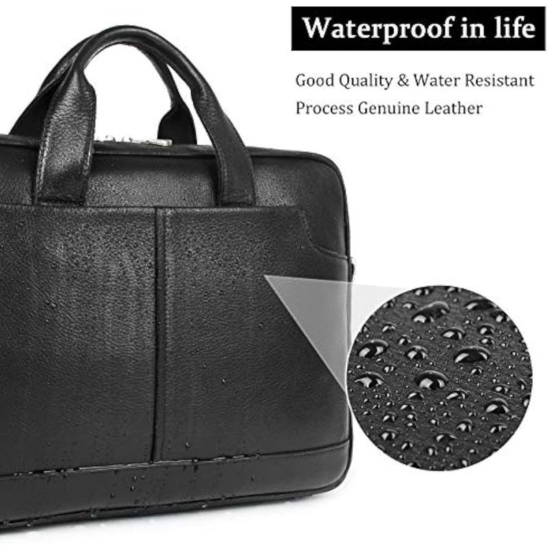 Augus Maletín de cuero para laptop para hombres, bolsa de viaje impermeable para portátil de 15.6