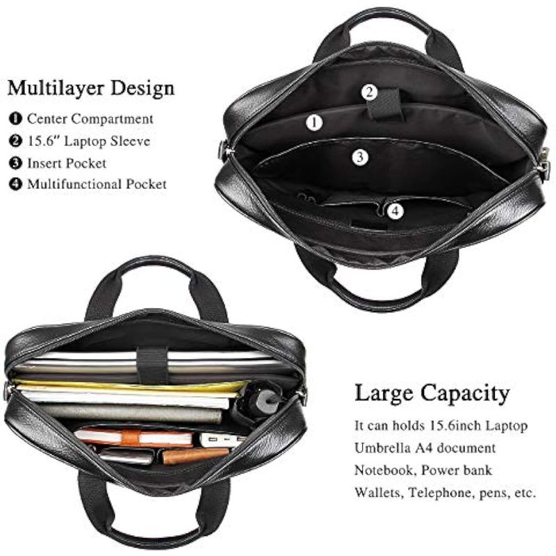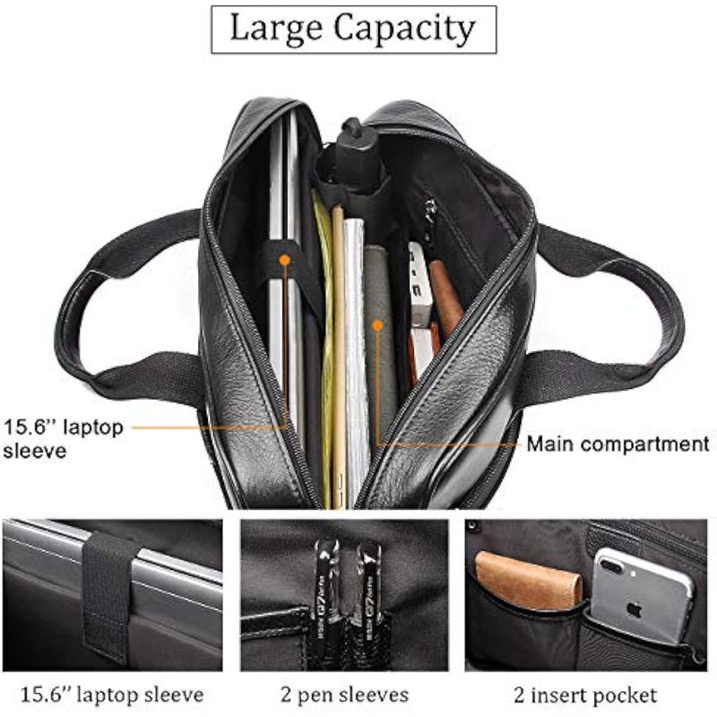 INFORMÁTICANOTEBOOKSAugus Maletín de cuero para laptop para hombres, bolsa de viaje impermeable para portátil de 15.6
