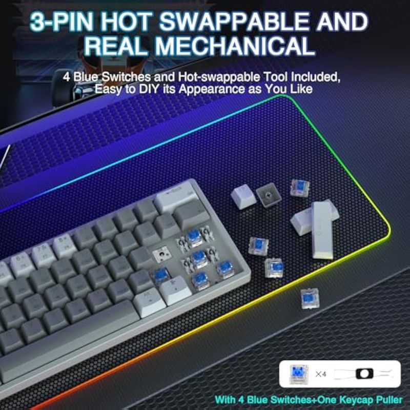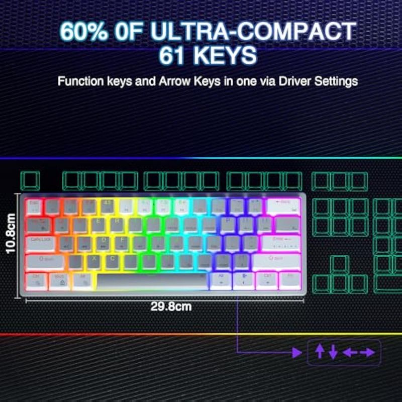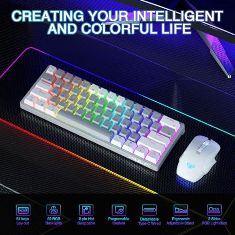 AULA 29 teclados mecánicos RGB para juegos de PC, 60 por ciento, mini teclado micro de perfil bajo,
