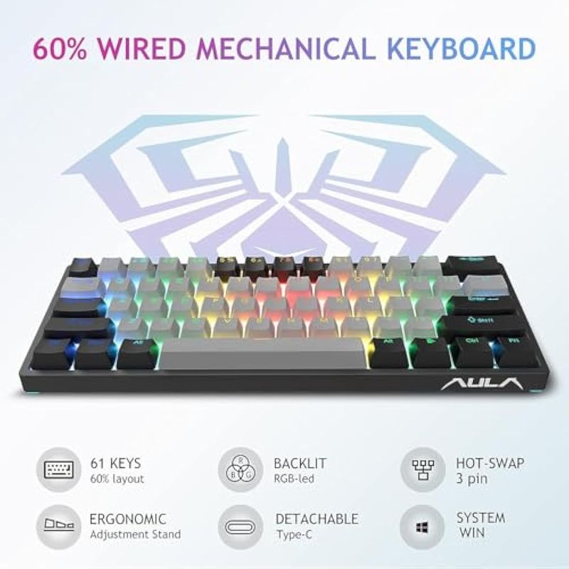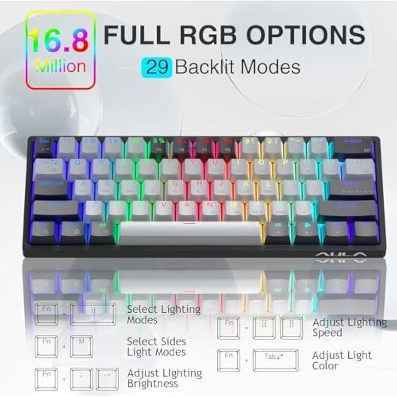 AULA 29 teclados mecánicos RGB para juegos de PC, 60 por ciento, mini teclado micro de perfil bajo,