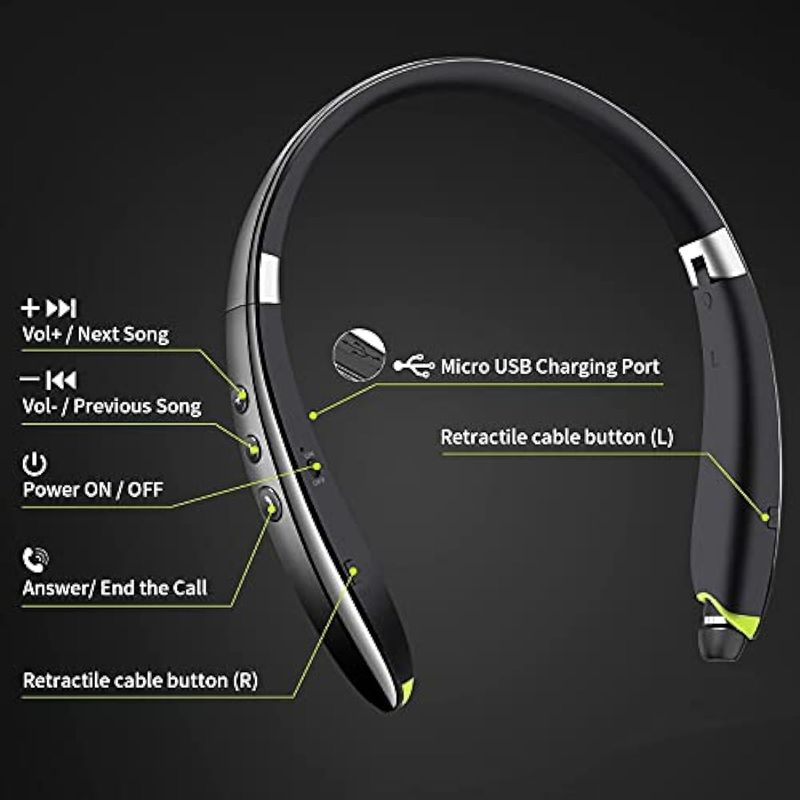 ?Banda para el cuello y diseño retráctil?: los auriculares Bluetooth con diseño ergonómico de banda para el cuello se adaptan a tu cuello y son cómodos de llevar. El diseño único de los auriculares retráctiles te permite tirar del cable a la longitud deseada y retraerlo cuando no lo utilices. Además, los auriculares Bluetooth diseñados con silicona amarilla vibrante reducen eficazmente el sonido de colisiones al retraer los auriculares.