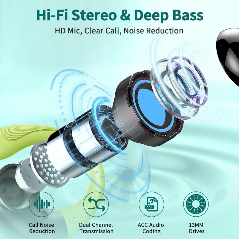 AUDIOAURICULARESIN EARAuriculares inalámbricos, Bluetooth 5.3 2024 deportivos, auriculares Bluetooth con micrófono ENC con