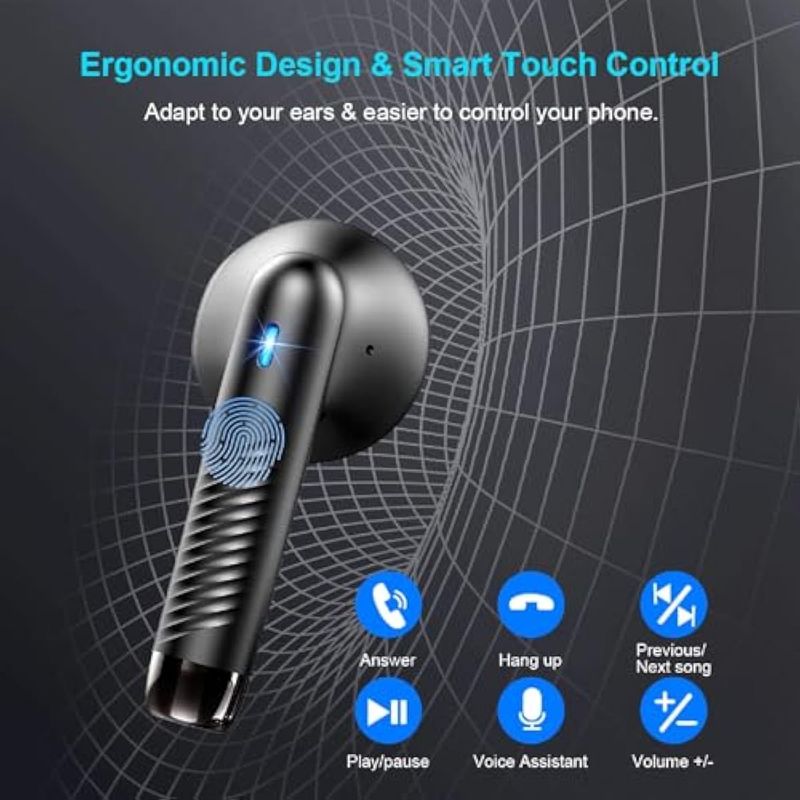 Controla tus dispositivos iOS o Android por los auriculares: los auriculares con cancelación de ruido soportan control táctil de doble oreja, proporcionando un funcionamiento cómodo en el control de volumen, canción anteriorsiguiente, pausa y contesta llamadas junto con control de asistente de voz. Te trae la verdadera experiencia inalámbrica cuando usas los teléfonos inteligentes iOS o Android, PC, tabletas, portátiles, TV... Además, nada es más importante que entrenar siempre con música.