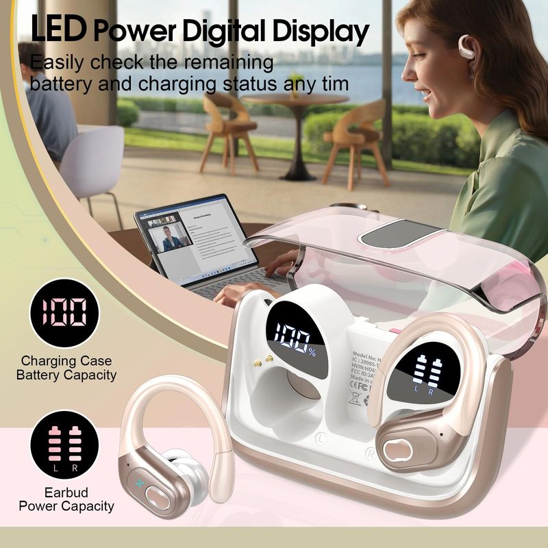 AURICULARES INALáMBRICOS BLUETOOTH 5.3 DE 75 HORAS PARA DEPORTE, AURICULARES BLUETOOTH 2024 ESTéREO CON GRAVES PROFUNDOS SOBRE LA OREJA CON GANCHOS PARA LOS OíDOS, MICRóFONO CON CANCELACIóN DE RUIDO
