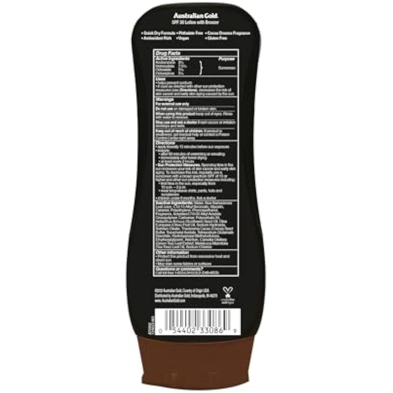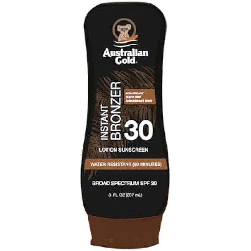 Australian Gold Loción de protección solar con bronceador instantáneo SPF 15, 8 onzas, amplio