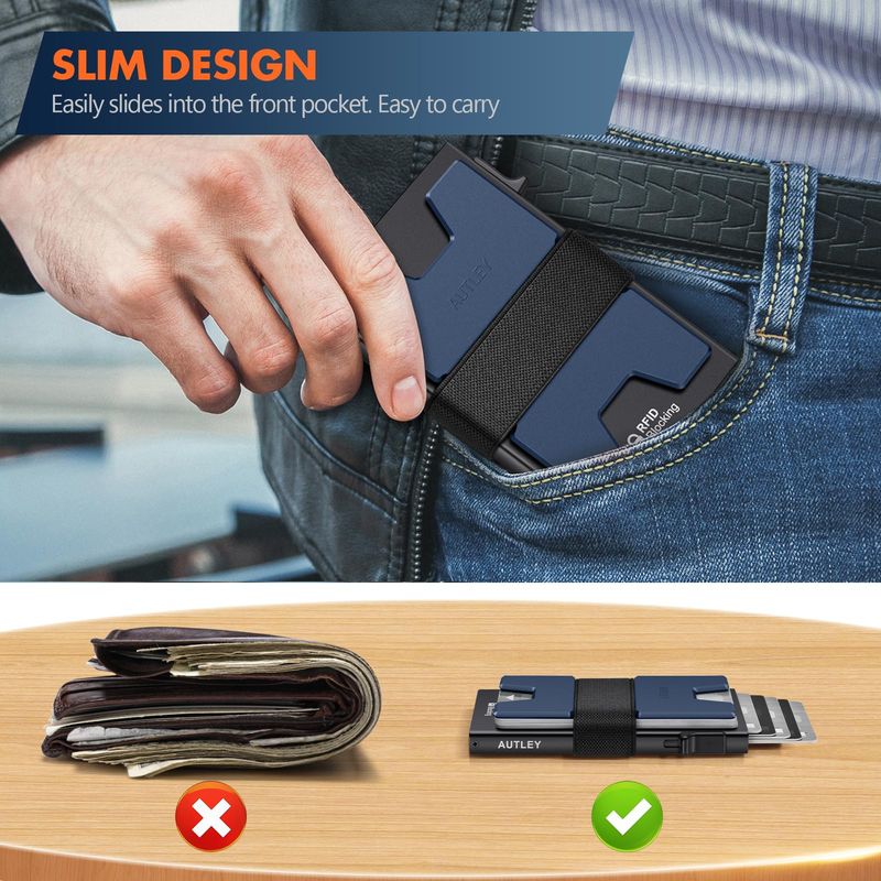 Cartera minimalista para tarjetas: diseño delgado y pequeño, construcción sólida. Se desliza fácilmente en el bolsillo frontal. Fácil de llevar. Ideal para personas que quieren una cartera bonita y delgada para salir.