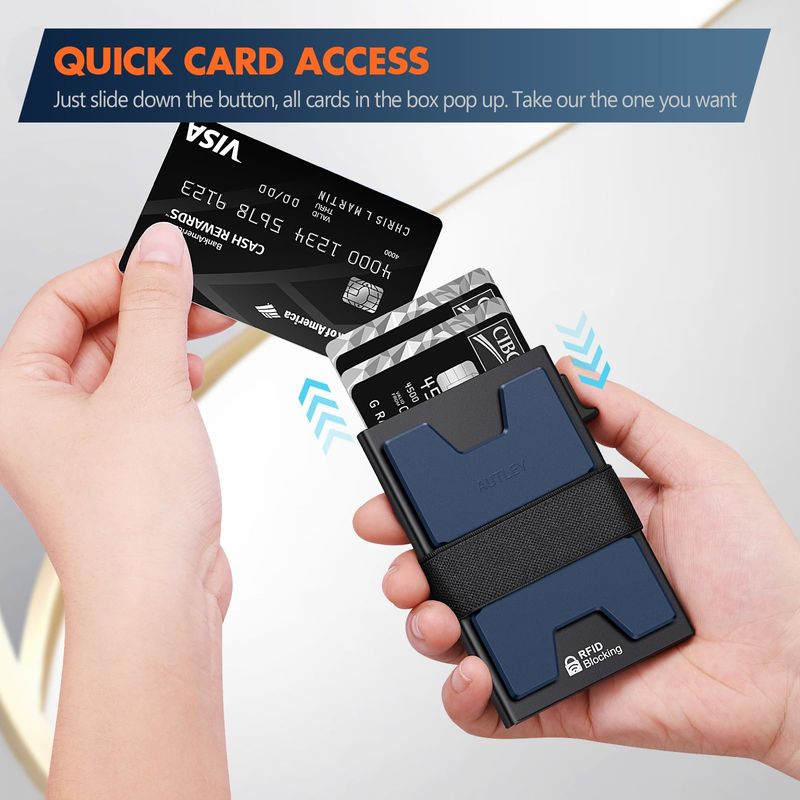 Bloqueo RFID y NFC: el cuerpo de aluminio avanzado bloquea las señales inalámbricas. Evita el robo inalámbrico o el escaneo no deseado. Asegúrese de que su información personal se mantenga segura.