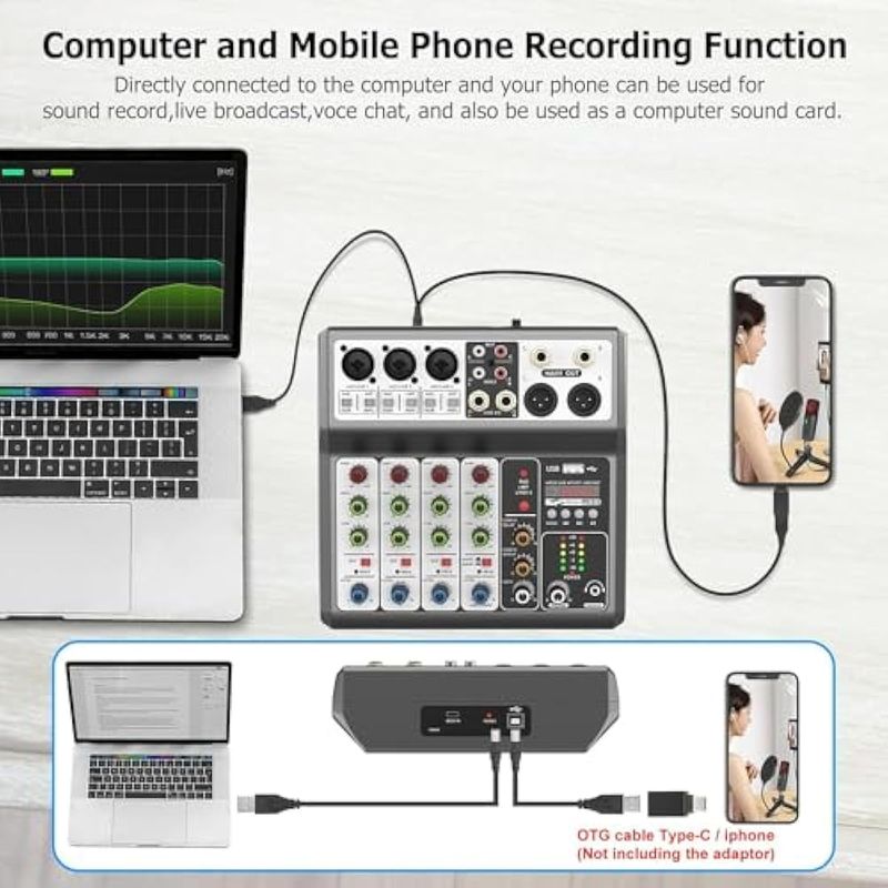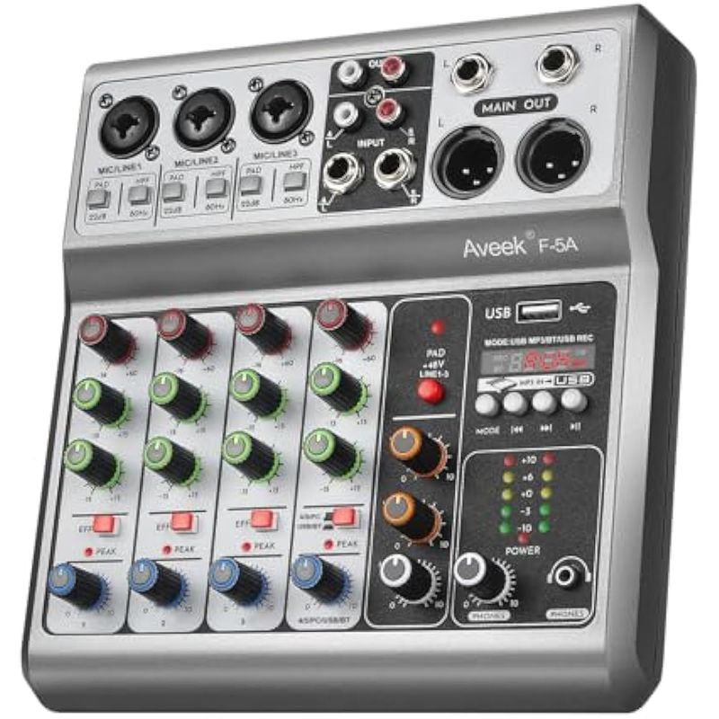 Aveek Mezclador de audio profesional, consola de mezcla de tablero de sonido con 5 canales USB