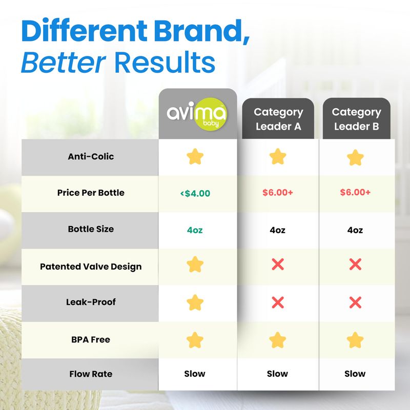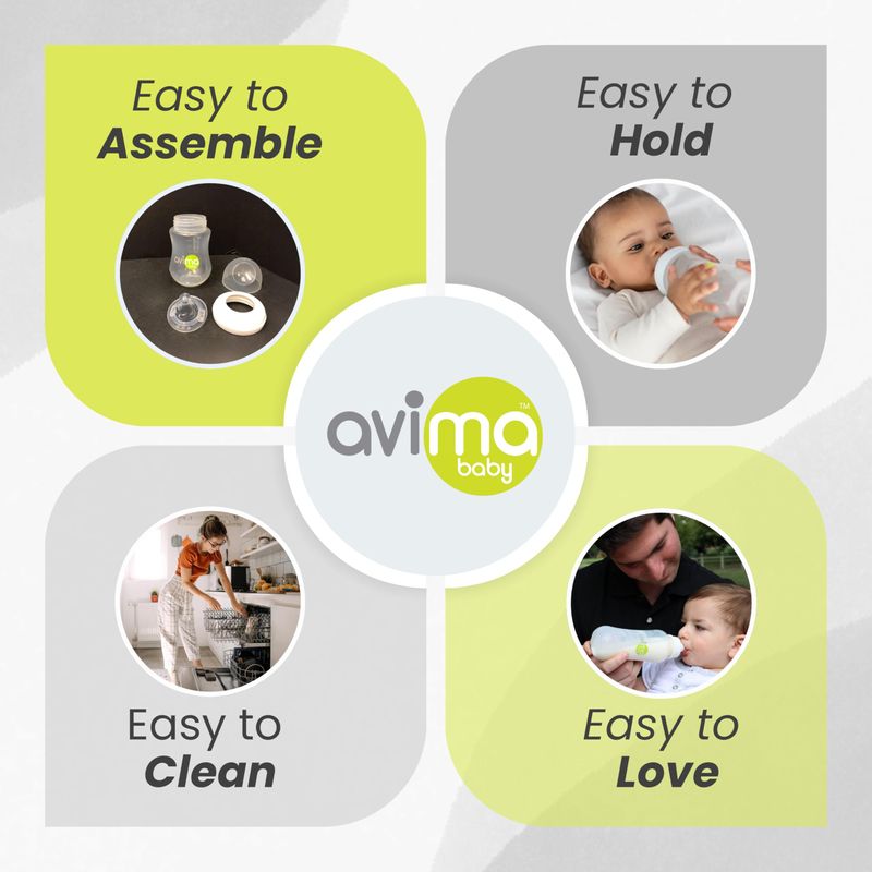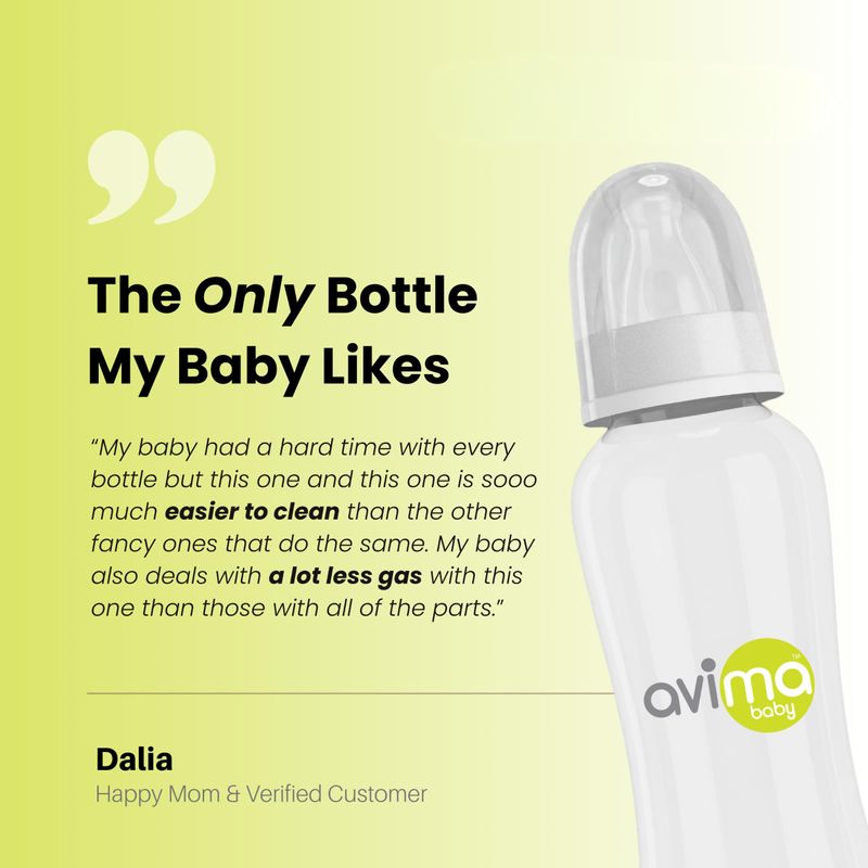 Avima Biberones anticólicos de 10 onzas, sin BPA, cuello estándar con pezones de flujo medio (juego
