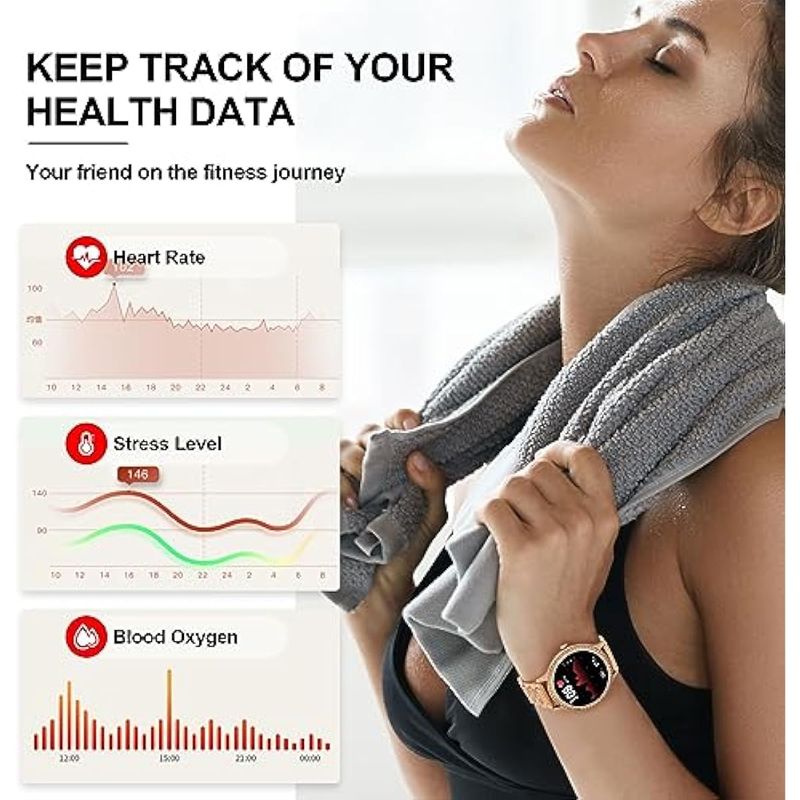 Función de monitoreo del sueño: el reloj inteligente para mujer compatible con iPhone tiene una potente función de monitoreo de la salud y análisis de datos personalizada. Los relojes inteligentes con funciones de monitor de presión arterial pueden ayudar a los usuarios a administrar mejor su salud, mantener un buen estado de vida y mejorar su condición física. Nuestra aplicación ha personalizado una función de recordatorio del ciclo menstrual femenino para todas las mujeres, lo que te permite monitorear períodos especiales y planificar con anticipación. Esta es tu primera opción para regalar en vacaciones.