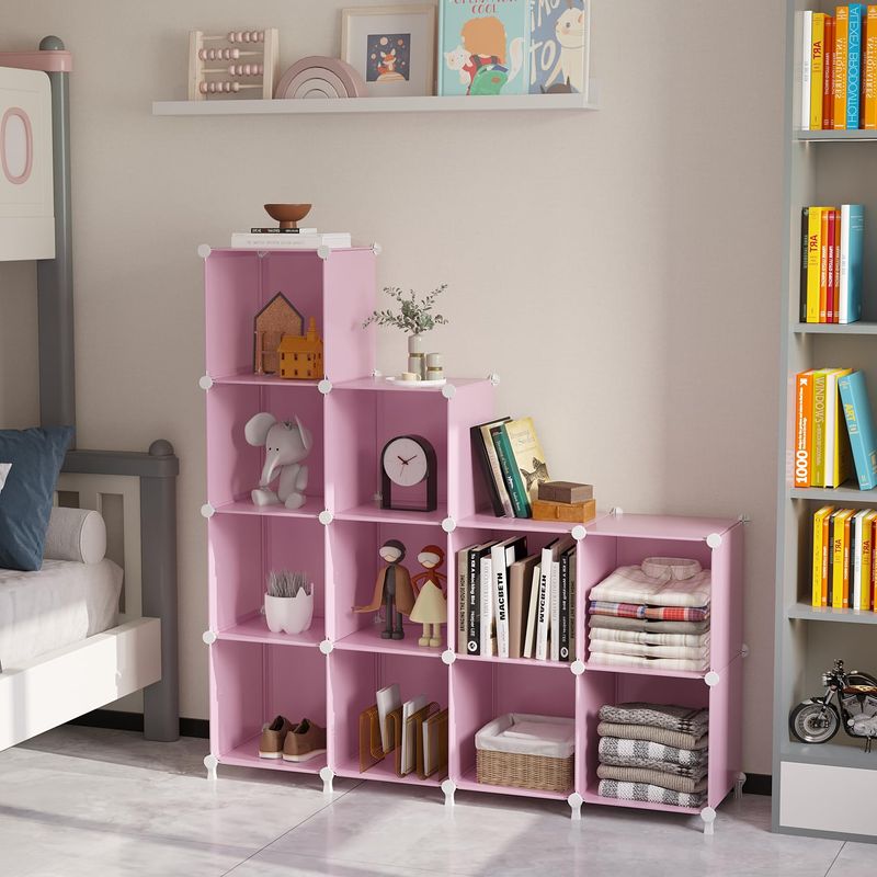 Estante multiusos: el organizador de estantes de 12 cubos se puede utilizar como estantería en el estudio, estantes de cubos de armario en el dormitorio, armario de juguetes en la habitación de los niños, estante de baño, contenedores de almacenamiento de lavandería, armario de almacenamiento de ropa, mantiene tu vida ordenada y limpia