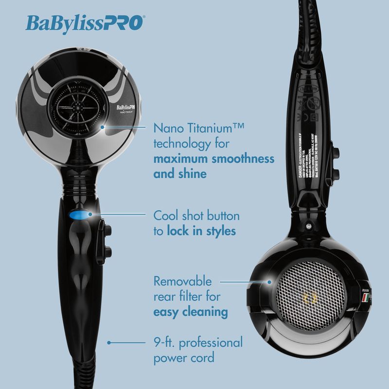 BaBylissPRO Secador de pelo, Nano Titanium Portofino 2000 vatios secador de pelo, peinado y