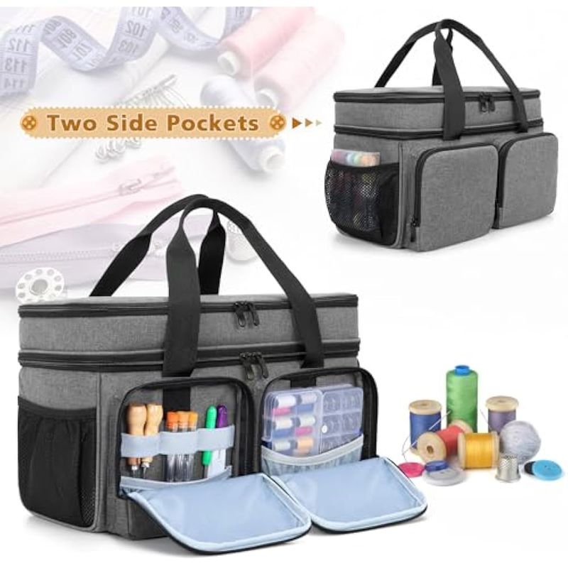 BAFASO ORGANIZADOR DE ACCESORIOS DE COSTURA DE DOBLE CAPACIDAD DE GRAN CAPACIDAD CON UNA BOLSA, GRIS