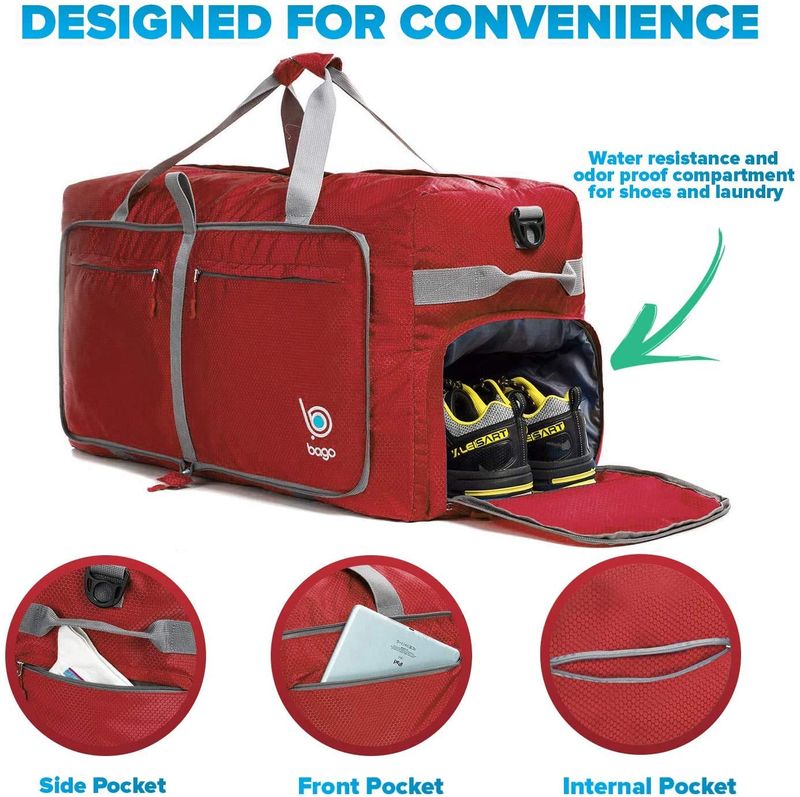 Bago - Bolsa de viaje para hombre y mujer, ligera, plegable, bolsa de lona para equipaje de 60 l, 80