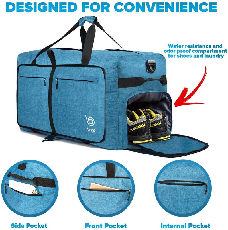 Bago - Bolsa de viaje para hombre y mujer, ligera, plegable, bolsa de lona para equipaje de 60 l, 80