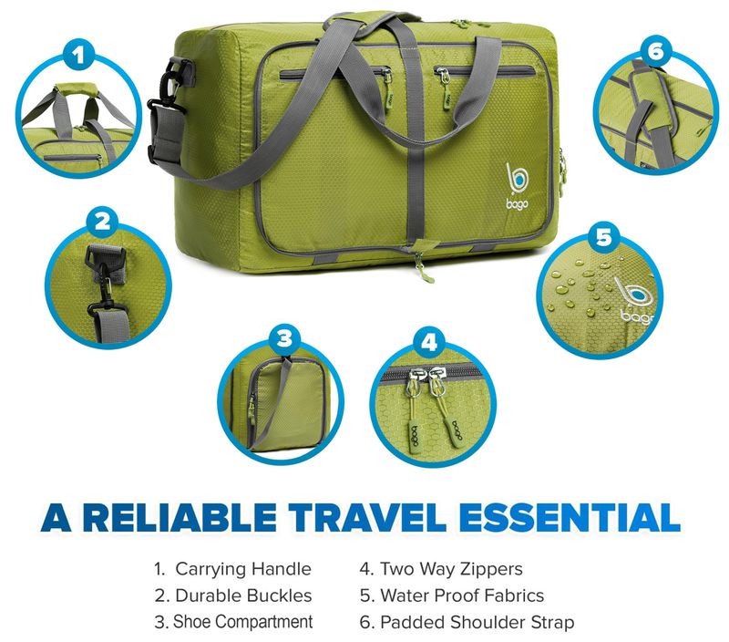 Bago - Bolsa de viaje para hombre y mujer, ligera, plegable, bolsa de lona para equipaje de 60 l, 80