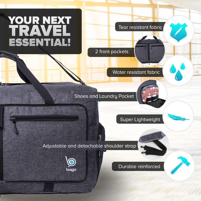 Bago - Bolsa de viaje para hombre y mujer, ligera, plegable, bolsa de lona para equipaje de 60 l, 80