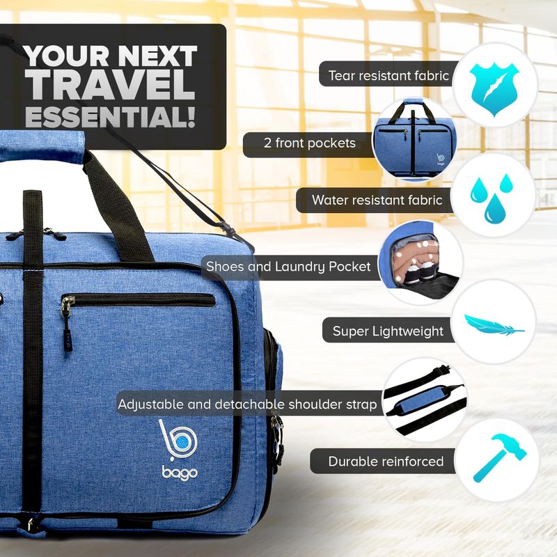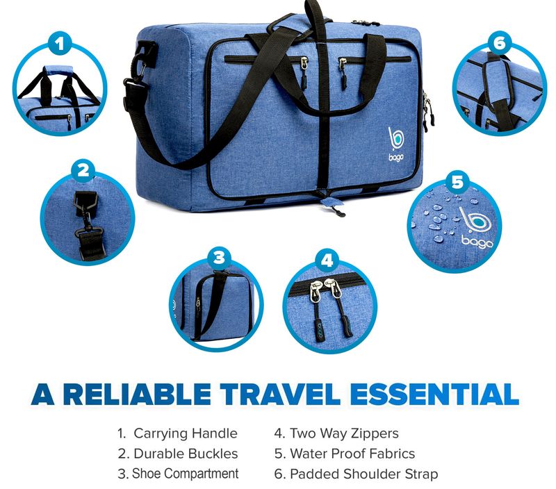 Bago - Bolsa de viaje para hombre y mujer, ligera, plegable, bolsa de lona para equipaje de 60 l, 80