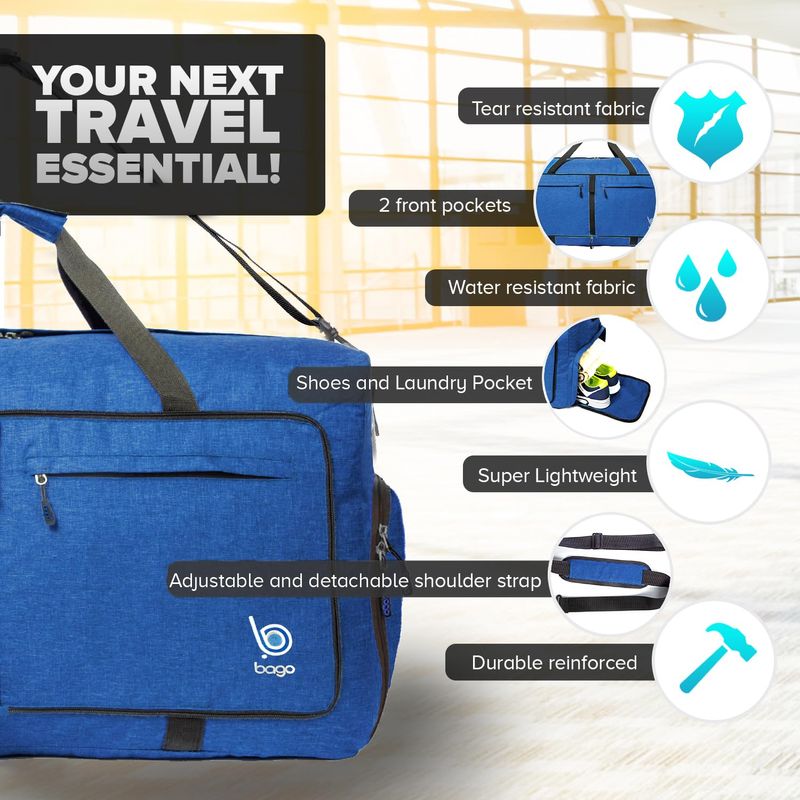 Bago - Bolsa de viaje para hombre y mujer, ligera, plegable, bolsa de lona para equipaje de 60 l, 80