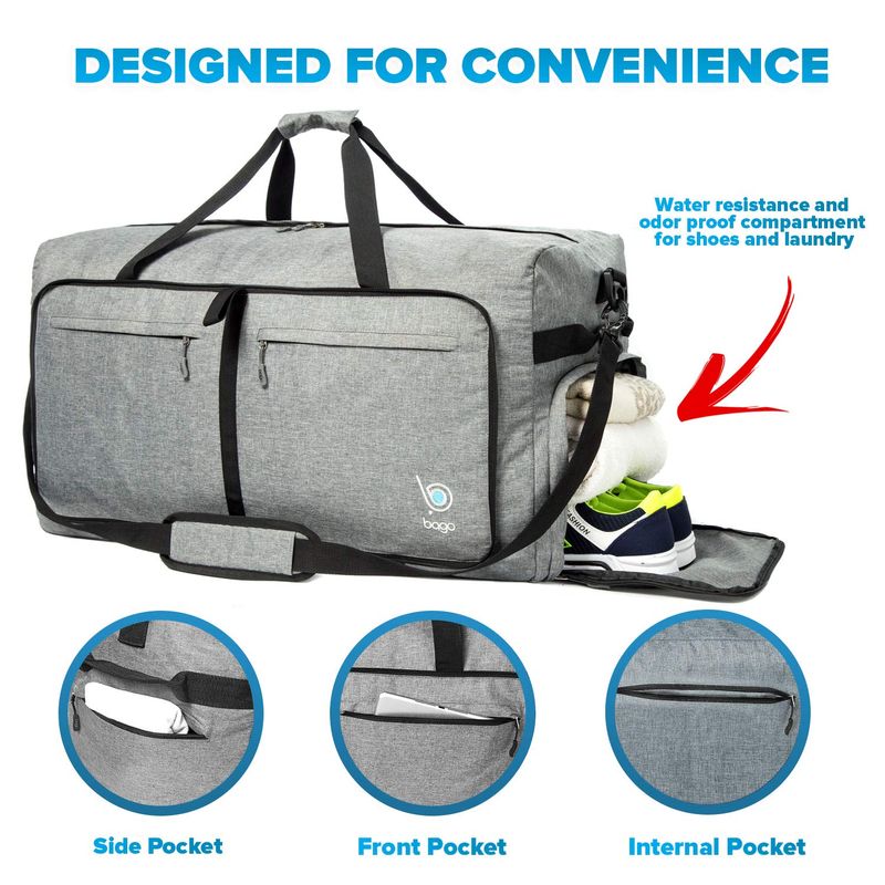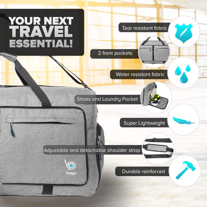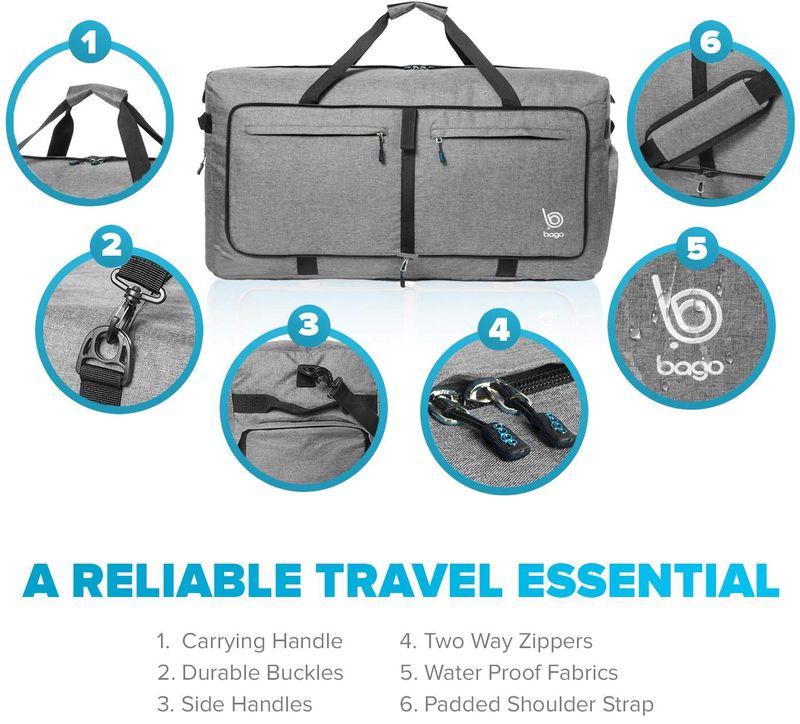 Bago - Bolsa de viaje para hombre y mujer, ligera, plegable, bolsa de lona para equipaje de 60 l, 80