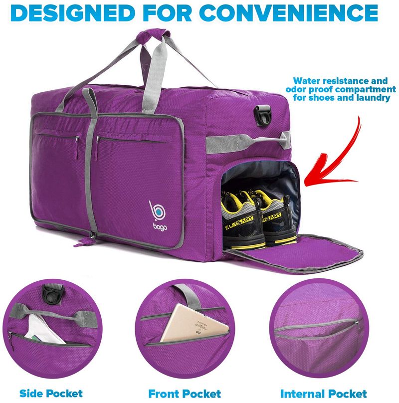 Bago - Bolsa de viaje para hombre y mujer, ligera, plegable, bolsa de lona para equipaje de 60 l, 80