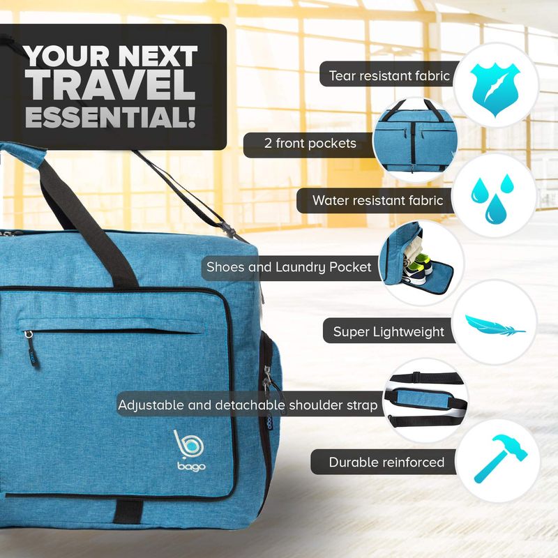 Bago - Bolsa de viaje para hombre y mujer, ligera, plegable, bolsa de lona para equipaje de 60 l, 80