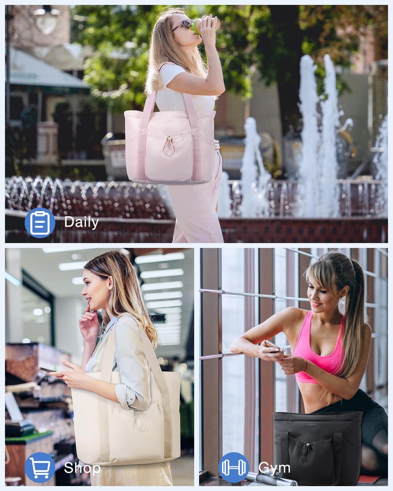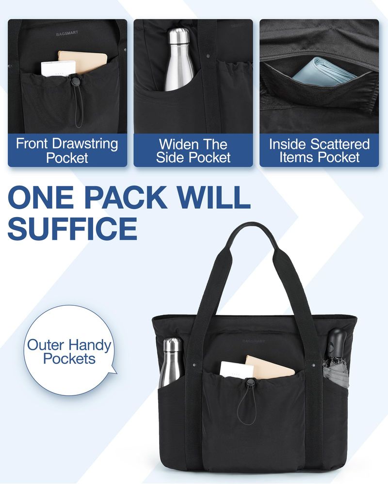 BAGSMART BOLSA DE MANO PARA MUJER, BOLSA DE HOMBRO CON COMPARTIMENTO PARA LAPTOP Y BOLSO CON CREMALLERA PARA VIAJES, TRABAJO