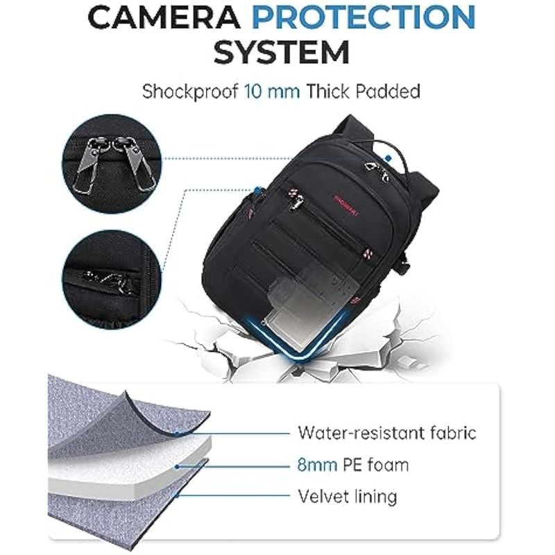 BAGSMART Mochila para cámara, bolsas expandibles para cámara DSLR SLR para fotógrafos, mochila de