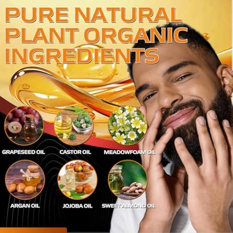 Todo en uno: aceite de argán, aceite de jojoba, manteca de karité y aceite de coco proporcionan una excelente hidratación y nutrición para tu vello facial, acondicionando y suavizando tu barba. Mejora el entorno de crecimiento de la barba, resuelve la picazón de la barba y la caspa de la barba