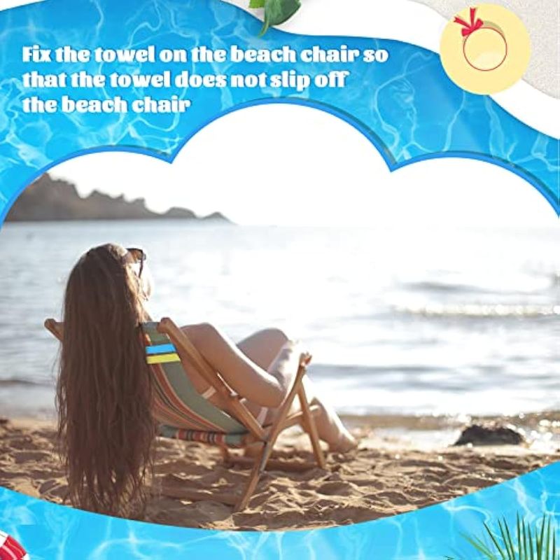 Múltiples aplicaciones: los elásticos de toalla resistentes al viento se pueden utilizar para sostener no solo toallas en sillas de playa, sino también para agrupar colchas, mantas delgadas, cojines de yoga y otras necesidades diarias, que también es adecuado para piscinas, campamentos y otras actividades al aire libre.