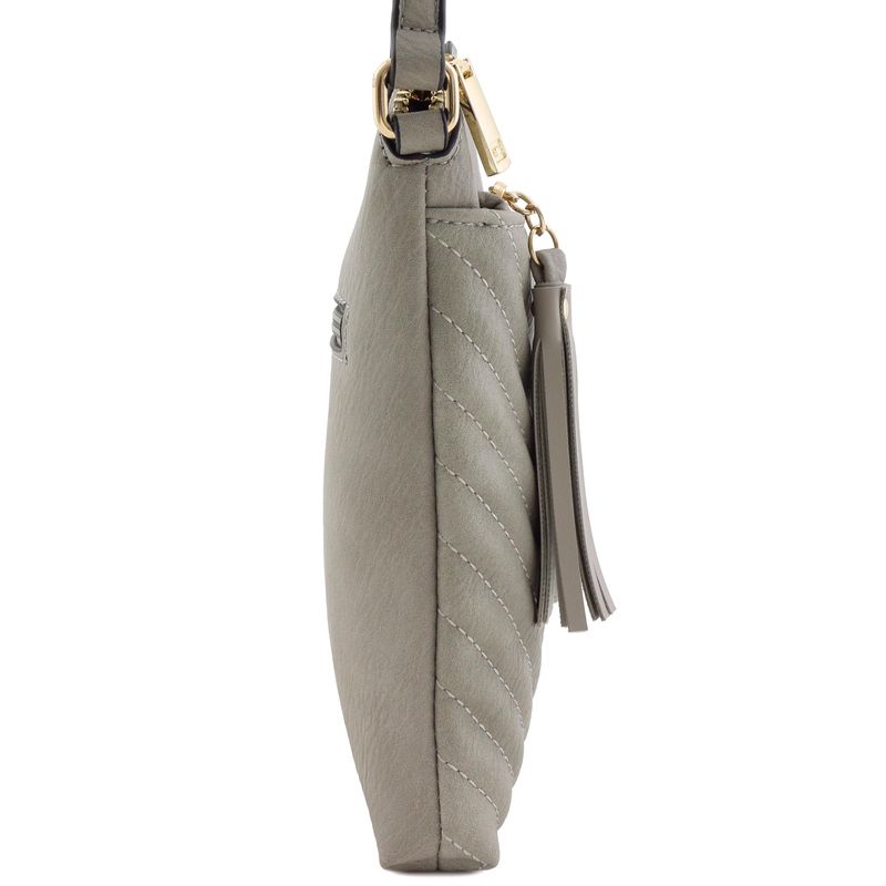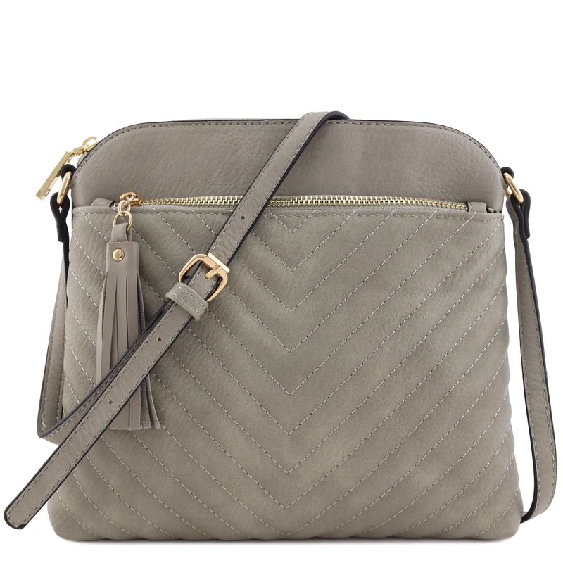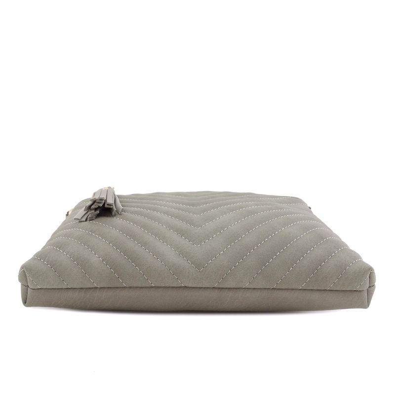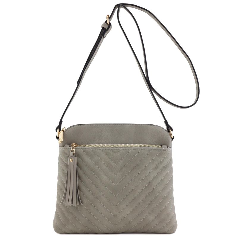 Bandolera o bolsa mediana con patrón triangular, de estilo cruzado, acolchada y con borla