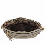 HOGARINDUMENTARIA Y ACCESORIOSBandolera o bolsa mediana con patrón triangular, de estilo cruzado, acolchada y con borla