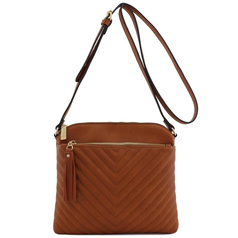Bandolera o bolsa mediana con patrón triangular, de estilo cruzado, acolchada y con borla