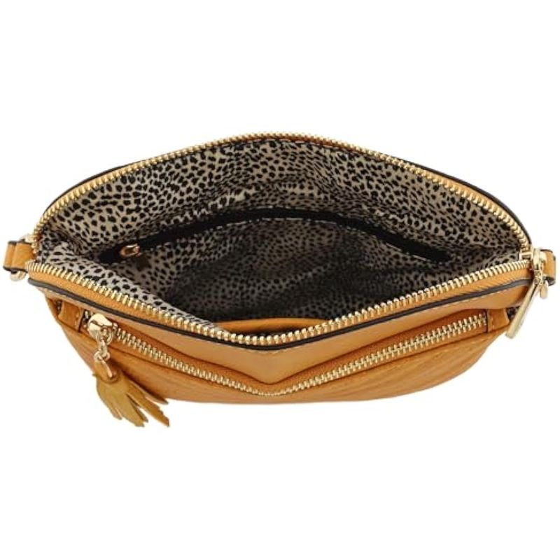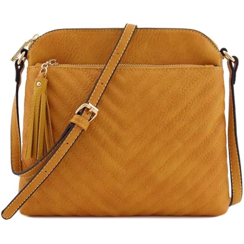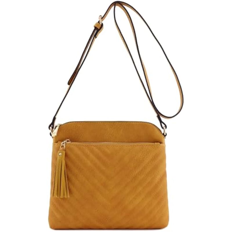 Bandolera o bolsa mediana con patrón triangular, de estilo cruzado, acolchada y con borla